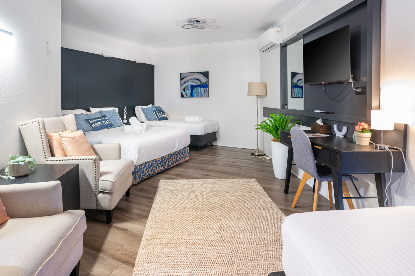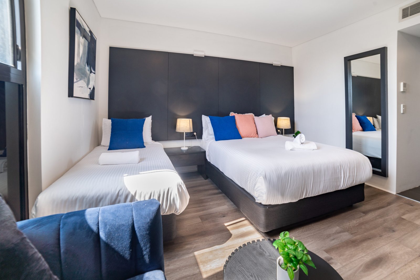 Designed to comfortably sleep up to four guests, our Classic Family Room is perfect for families or small groups. With enough space for everyone to unwind, it’s a clean and simple base for your stay, just a short drive from Sydney Olympic Park.